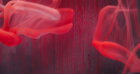 Red ink drops in water creating abstract patterns, resulting in a dynamic and artistic visual. Ideal for abstract, art, and creative themes.