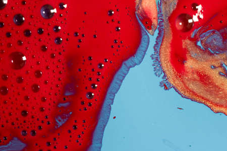 Color macro abstraction. Macro world and texture of liquid with the addition of paint. Abstract background from ink, milk and oil