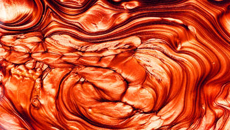 Ink water. Marble texture. Defocused red bronze brown color acrylic liquid fluid wet pigment spreading on abstract art background.