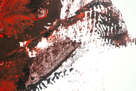 Black and red hand painted acrylic background. Grunge acrylic texture with painted dots and brush strokes.