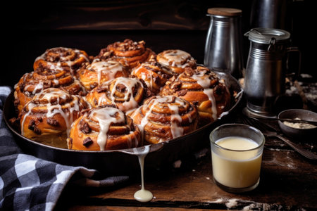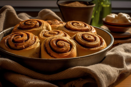 Baking delicious cinnamon rolls in a cozy kitchen setting