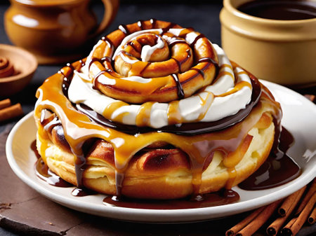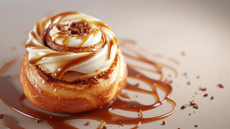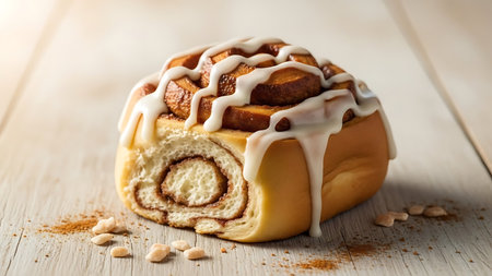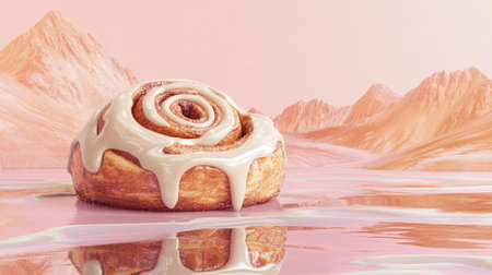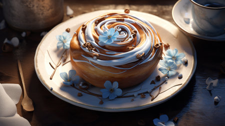 A warm cinnamon roll with a generous swirl of icing and a fragrant aroma created with Generative AI
