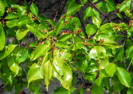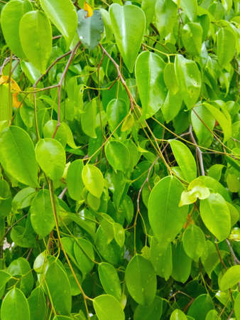 Green leaves of a Banyan tree. Ecological concept.