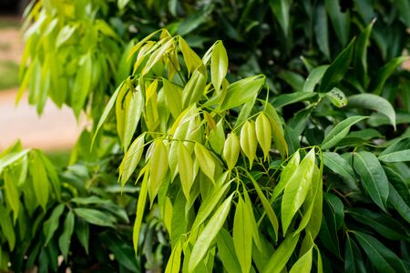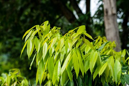close up mango leaves on tree in the garden