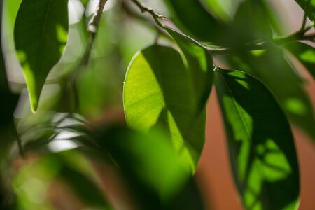 Ficus foliage background. Fresh green leaves on ficus tree