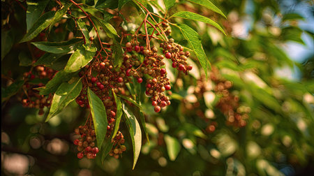 The Sichuan pepper in summer, Bright sunlight pierces dense foliage, the air feels hot, natural color