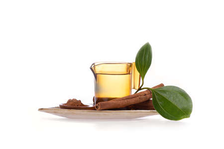 Cinnamon dried peel and powder isolated on a white background.