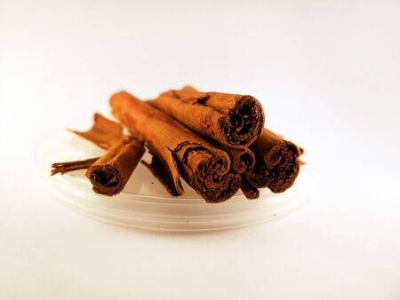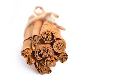 Fragrant cinnamon sticks on a white background