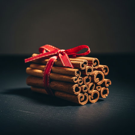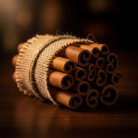 Macro close up portrait of cinnamon sticks, studio lighting, selective focus