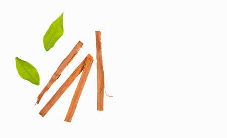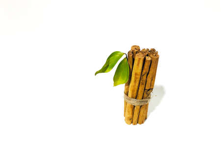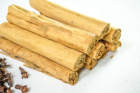 Kayu Manis or Cinnamon sticks isolated on white background.