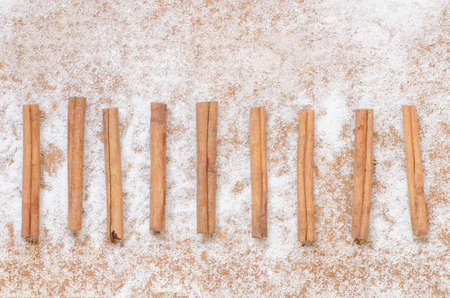 cinnamon sticks on sugar background