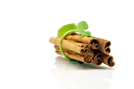 Kayu Manis or Cinnamon sticks isolated on white background.