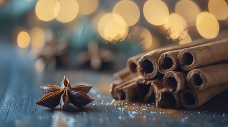 cinnamon ground sticks ceremony cocoa cloves ground coffee spices on wooden table closeup