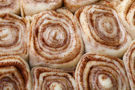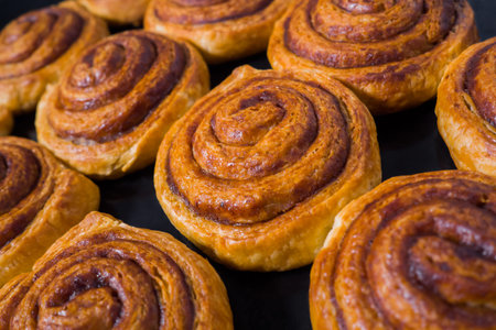 Freshly Baked Traditional Sweet Cinnamon Rolls, Sweet Homemade Pastry. Close-up.