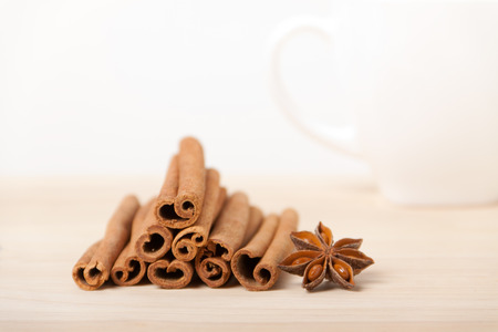 Cinnamon sticks and anise seeds. Good spices for digestions with white background.Health diet