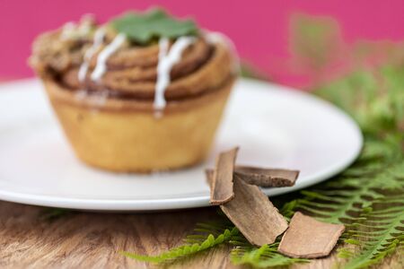 a sweet cinnamon pastry, a high calorie bun or roll. with cinnamon as a food background for your design