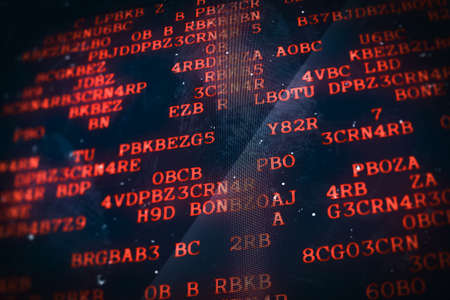 Hexadecimal big data digital code. Futuristic information technology concept. Computer generated 3D rendering illustration with DOF