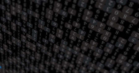 3d digital field with changing number. Animation. Hacking computer system with lot of numbers and letters. Process of processing digital field of multi-colored values inside program