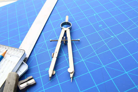 Set for drawing on a blue background. Compass with rulers