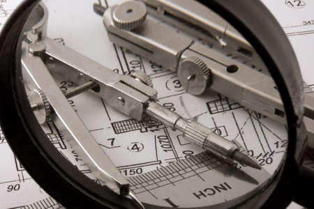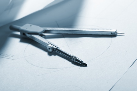 Design and working blueprints with compasses