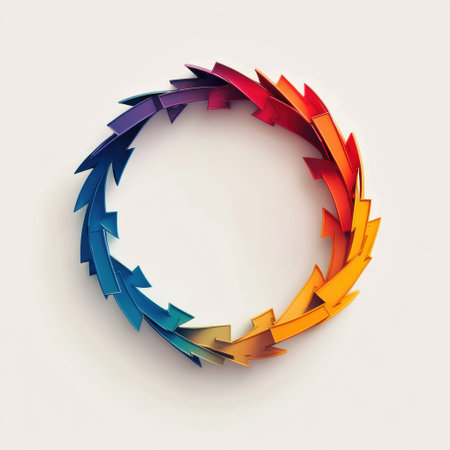 Vibrant arrows in a circular pattern demonstrate a sense of movement and direction, blending a spectrum of colors for visual impact.