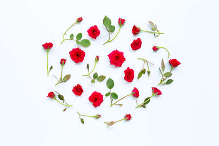 Rose on white background. Top view