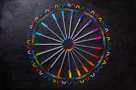 Colorful circles on a white background. View from above. Flat lay.