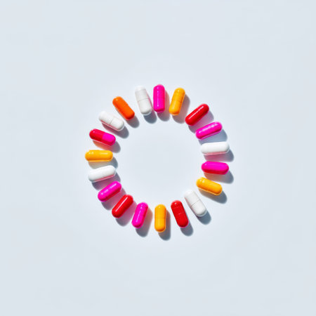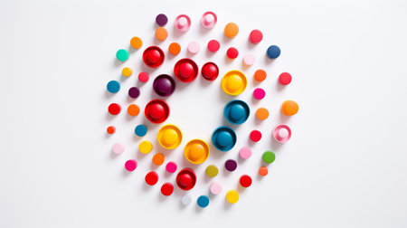 A vibrant circular display of colorful capsules against a soft light background, symbolizing health, wellness, and pharmaceutical care in modern medicine.