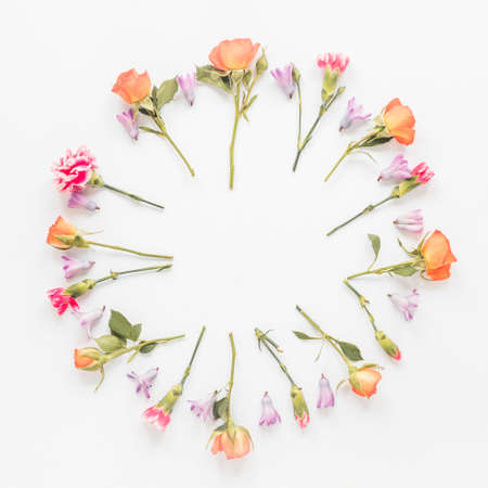 round frame from different flowers table. High quality photo