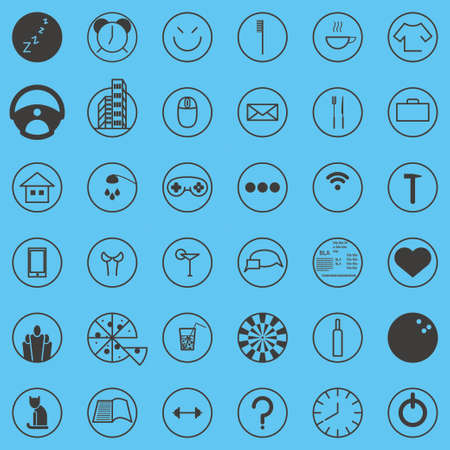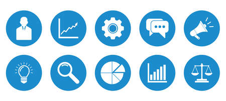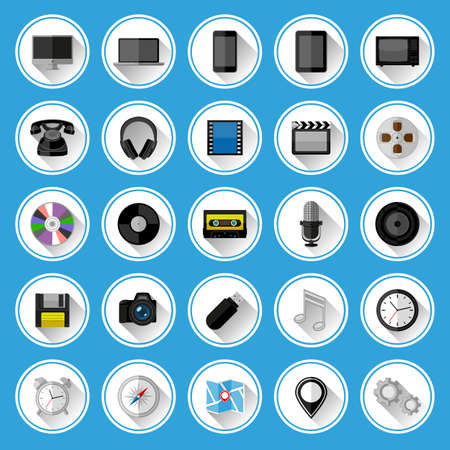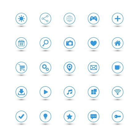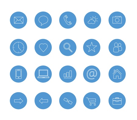 Set of vector illustrations of round icons, buttons and icons in blue