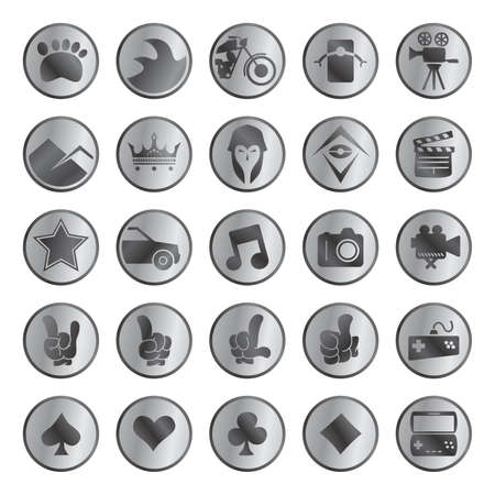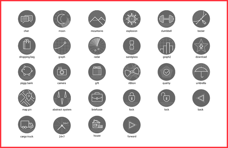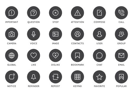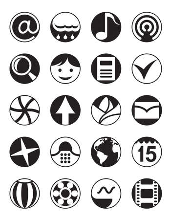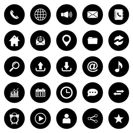 Set of black and white icons for web and user interface. Vector illustration