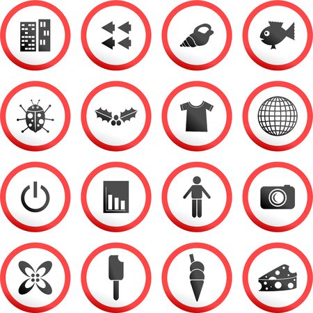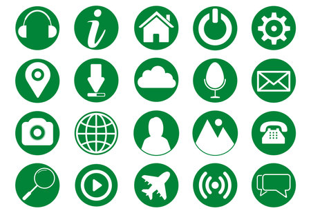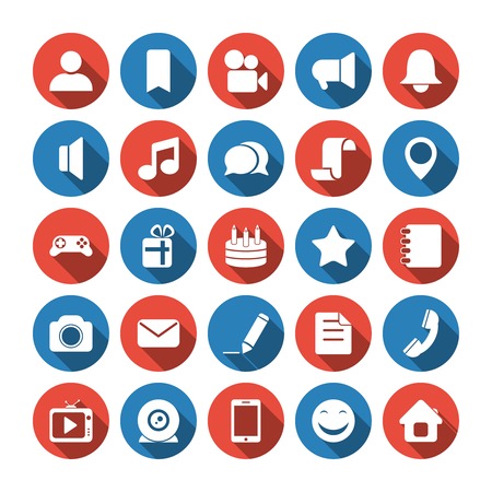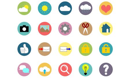 Set of icons, color circle on white background
