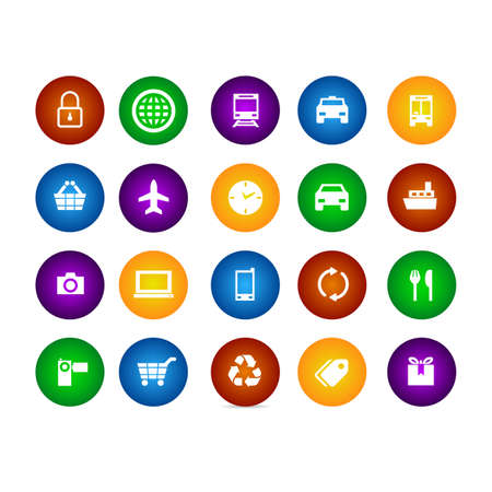 colorful icon set travel shopping equipment circle vector