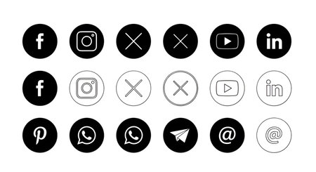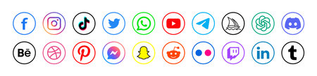 Collection of popular social media icons and logos Icons for Facebook.Twitter.Instagram.LinkedIn.YouTube.etc. Easily customizable and resizable for website or app design