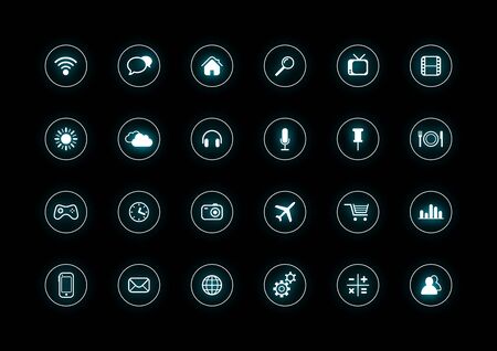 set of web icons on a black background, vector illustration, eps10