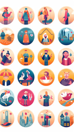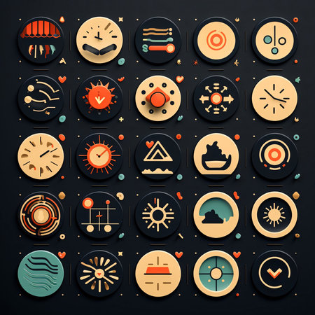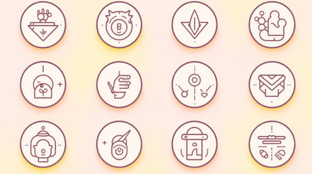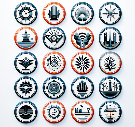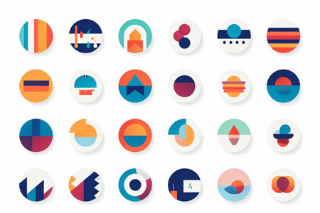 flat icon set of abstract geometric, round shape, vector graphic, AI generated.