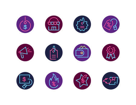 Neon icon set design of Shopping commerce market store shop retail buy paying banking and consumerism theme Vector illustration