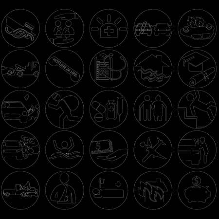 Set of black and white icons on a white background. Vector illustration