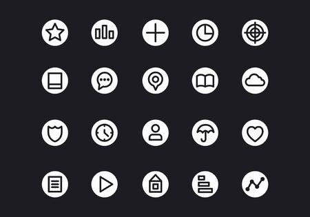 New icons collection: Set of round flat icons on the dark background. Vector illustration.