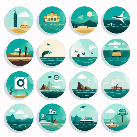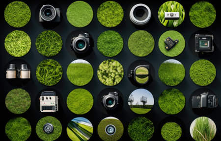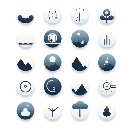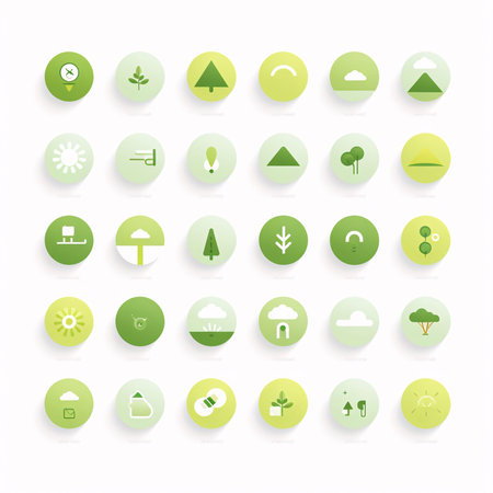 water, nature, and earth icons are beautifully arranged in a circle, showcasing their interconnectedness. the icons are designed in a captivating style, combining dark white and light navy colors. the graphic design-inspired illustrations feature soft gradients and atmospheric lighting, reminiscent of the artistic influences of black mountain college. the toy camera effects add a unique touch to this installation-based artwork. ai generated