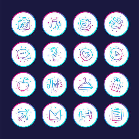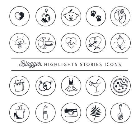 Social networks stories icons. Highlights icon set for blog, website, stickers etc. Vector illustration.