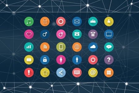 Abstract circular web of icons and bubbles