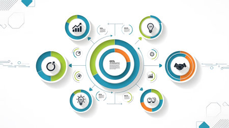 A vibrant and modern circular infographic designed for data visualization and business presentations.