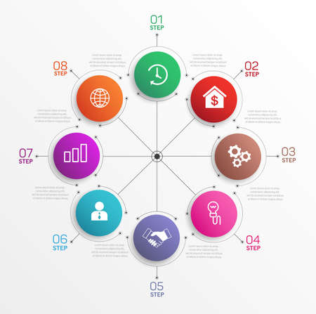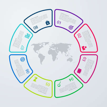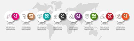 Business infographics design template with 8 steps or options, can be used for workflow layout, annual report, web design, presentation
