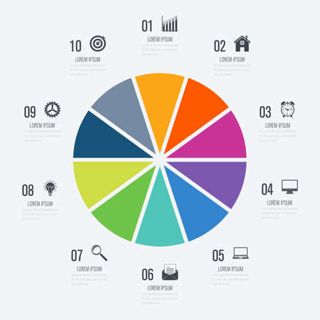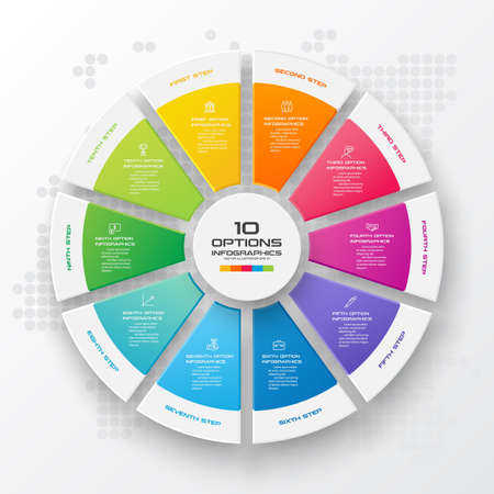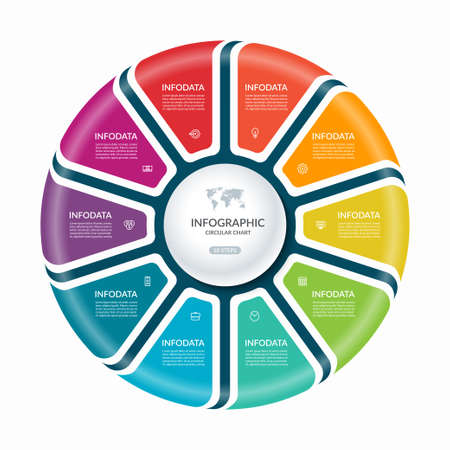 Infographic circle with 10 steps, parts. Vector process chart, cycle diagram for business presentation, report, brochure, web, data visualization.