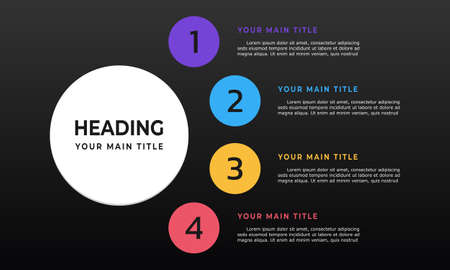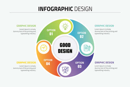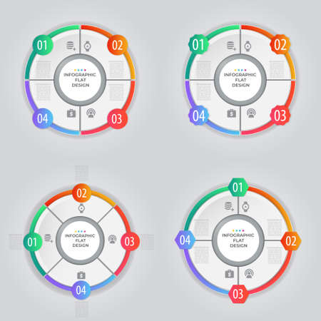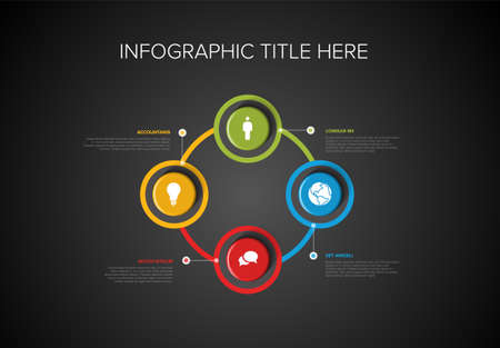 Vector multipurpose Infographic template with four elements options on a color cycle and modern colors on a white background, each infographic with icons on dark background