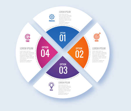 Blank circular infograph with 4 steps. Infographic template with 3D paper label. Vector