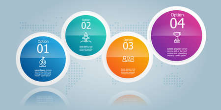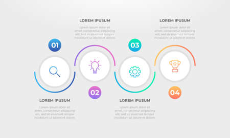 abstract horizontal circle infographics element presentation report with business icons 4 step vector illustration background