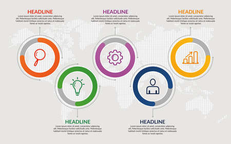 Business infographic template with 5 options circular shape, Abstract elements diagram or processes and business flat icon, Vector business template for presentation.Creative concept for infographic.