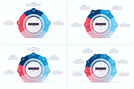 Set of circle infographic design templates. 3 4 5 6 options. Vector illustration